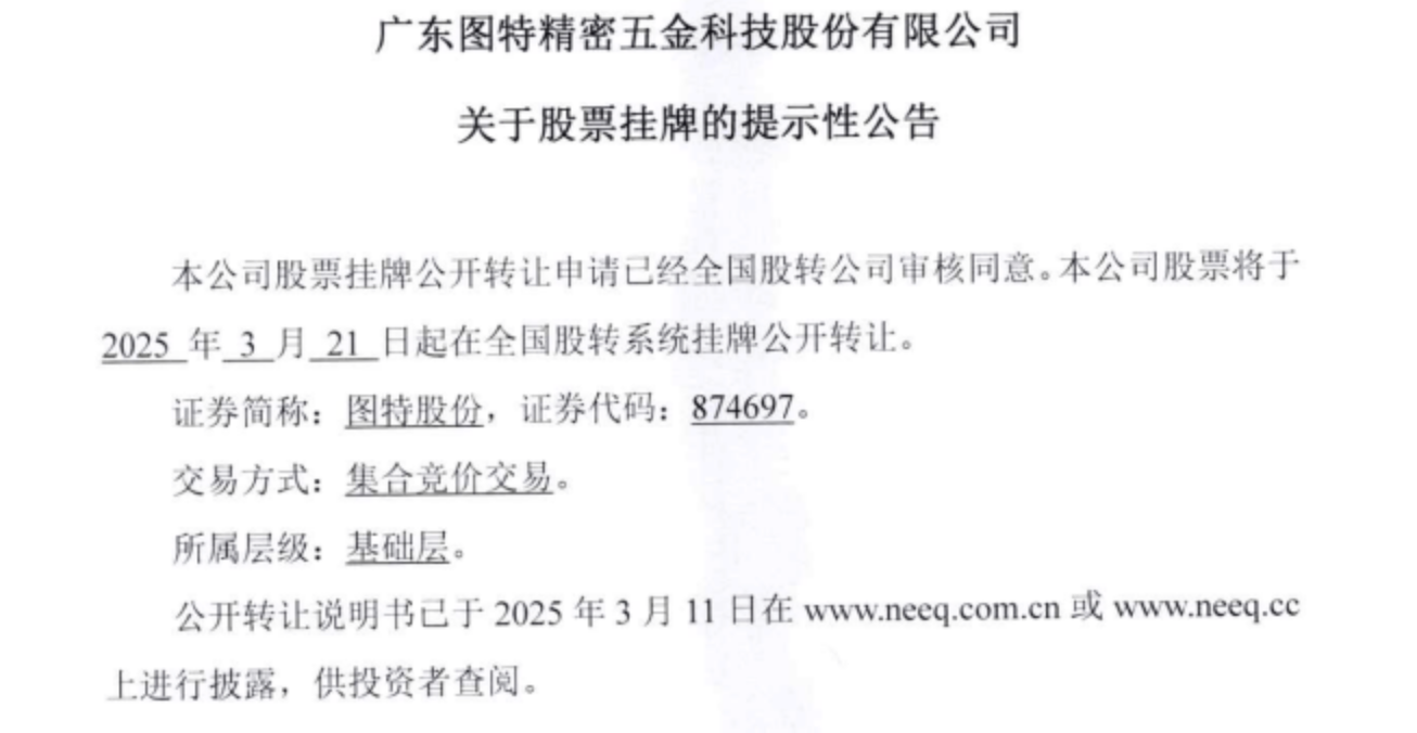 天气渐暖,属于泛家居行业的上市行情也逐渐走热。除了N矽电股份成功挂牌创业板外,3月21日有消息称,图特股份(874697.NQ)也成功挂牌新三板。据悉炒股杠杆口诀,图特股份的IPO历程也十分波折,曾有业内人士分析称其或受“IPO收紧”的影响。